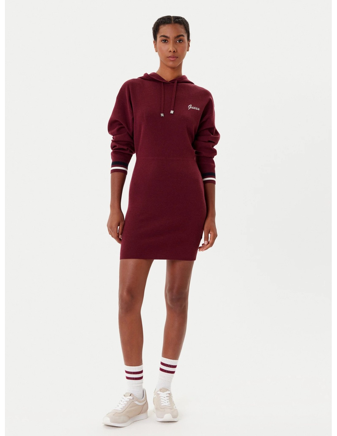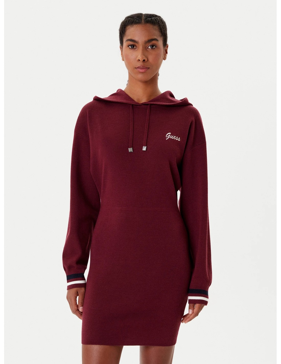 Abito con cappuccio in misto lana Guess bordeaux V5BK01Z1152