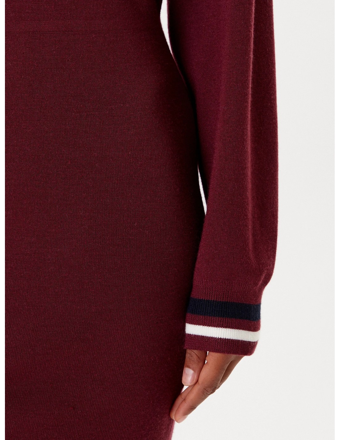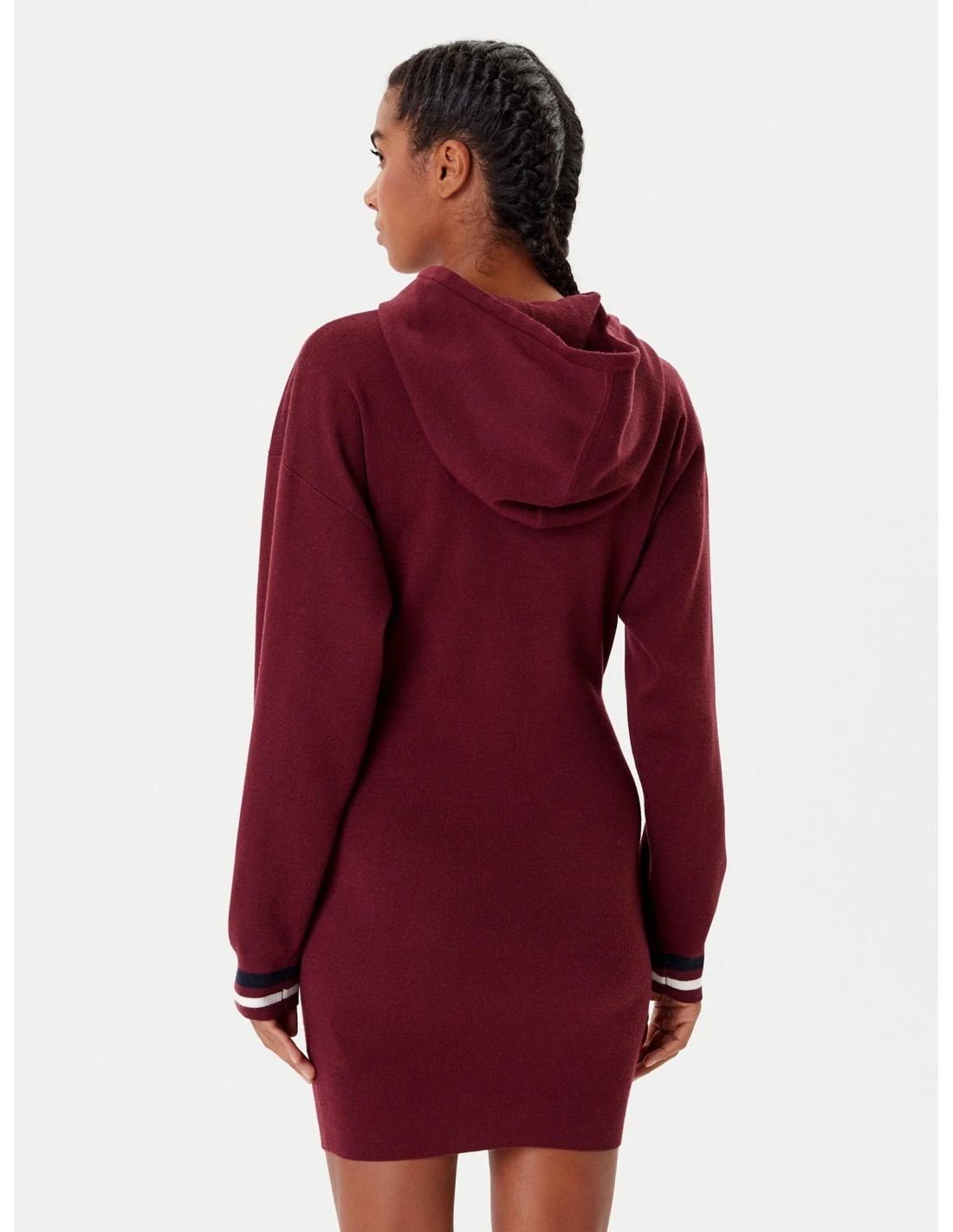 Abito in maglia misto lana, cappuccio con coulisse, maniche lunghe con polsini a costine a righe.
