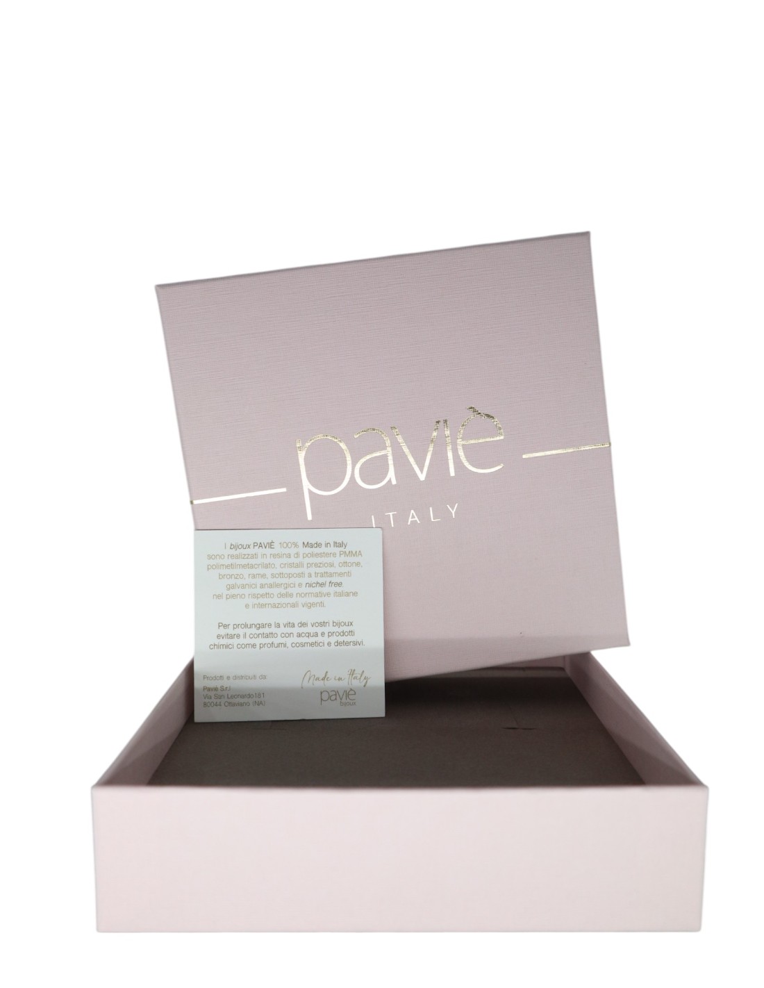 Tutta la linea Pavie' è realizzata in resina di poliestere PMMA polimetilmetacrilato, cristalli preziosi, ottone bronzo, rame,