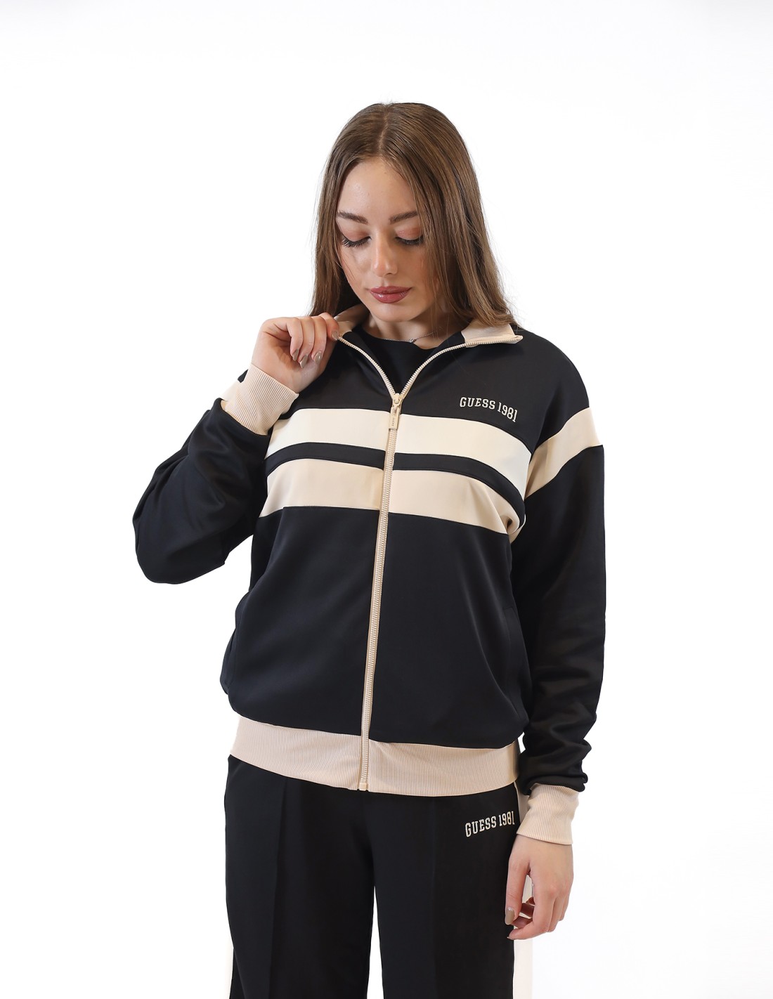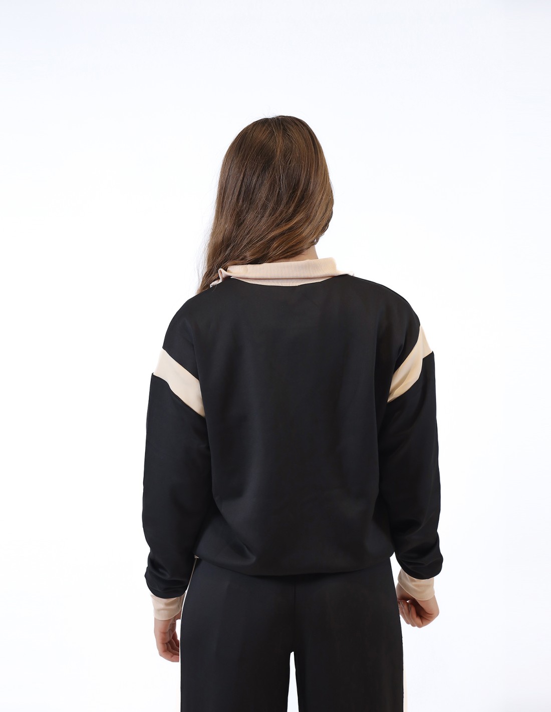 Felpa con maniche lunghe e collo alto, con chiusura a cerniera lampo frontale.