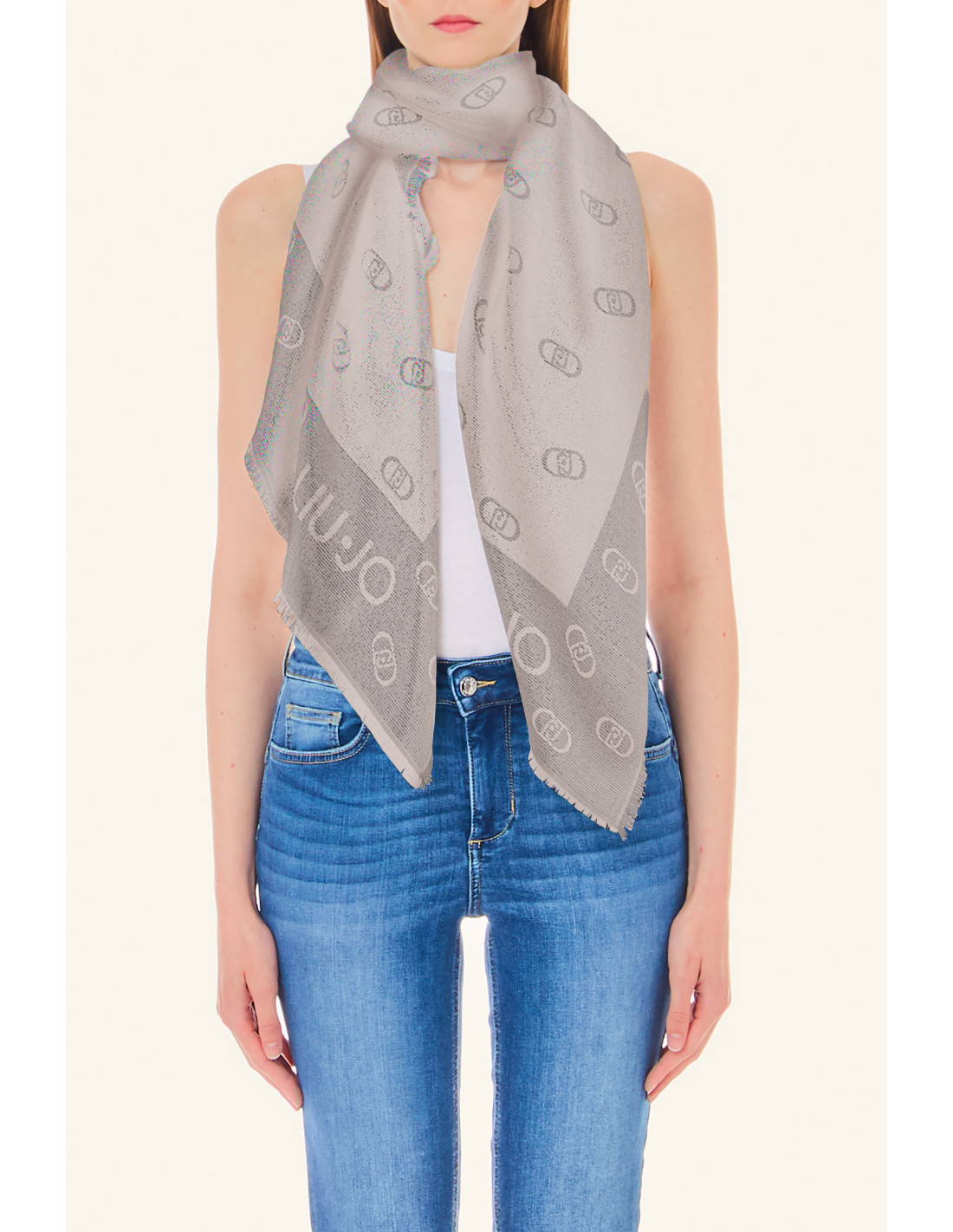 Foulard in tessuto viscosa con logo a catena tono su tono.