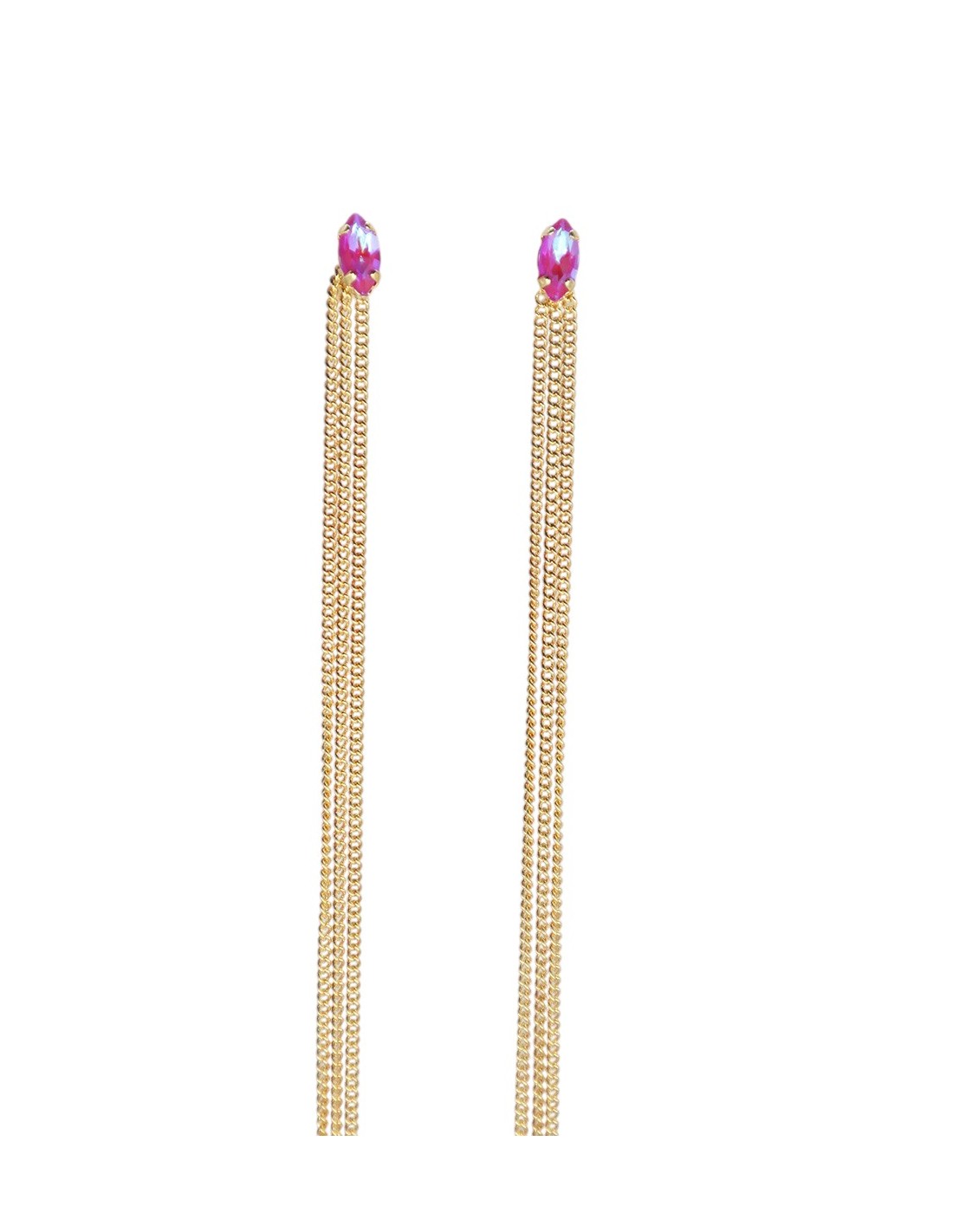Orecchini con pietra in Swarovswki e galvanica in oro, lunghi 15cm. Realizzati 100% made in Italy.