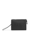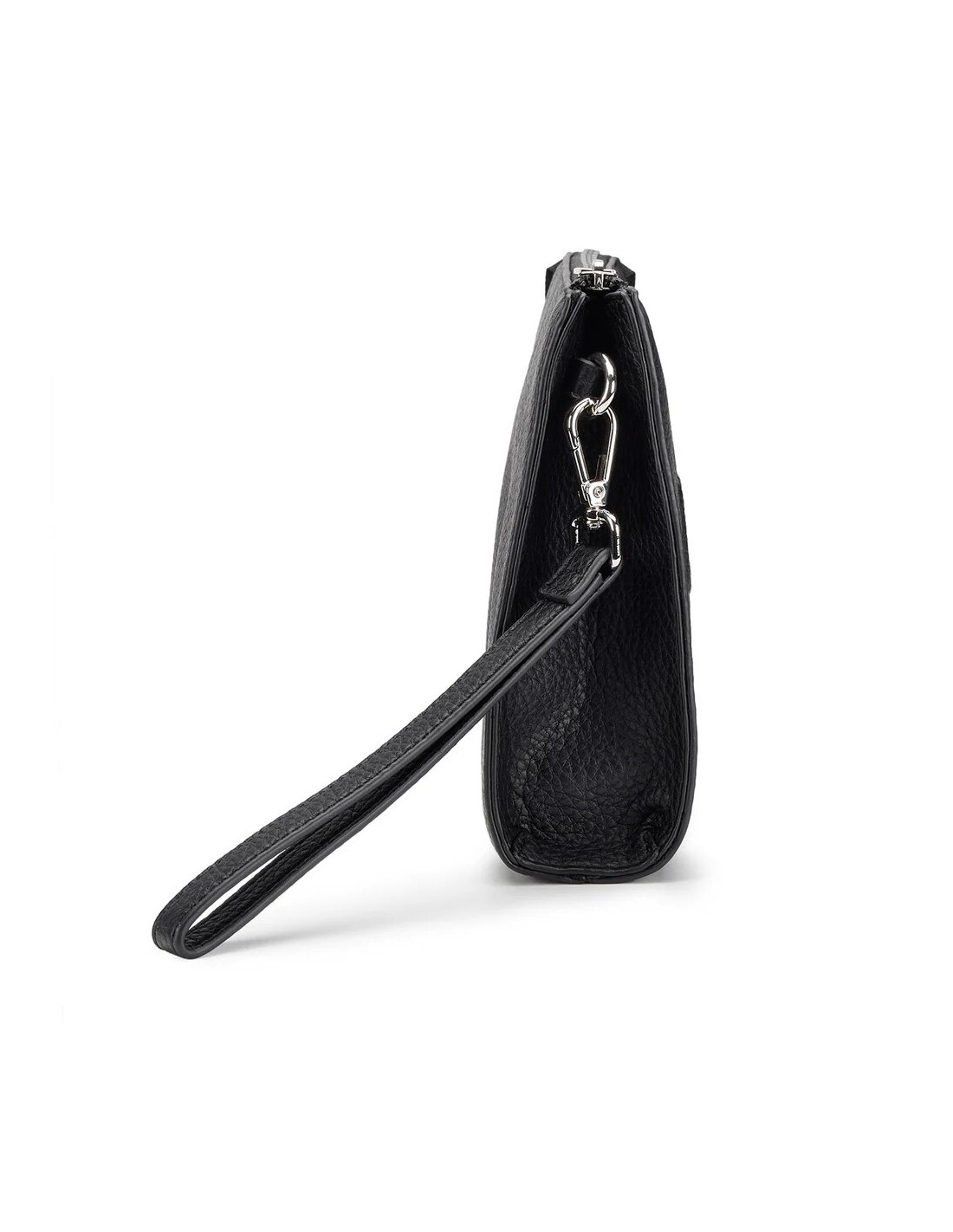 Pochette in similpelle, effetto bottalato, chiusura con cerniera lampo.
