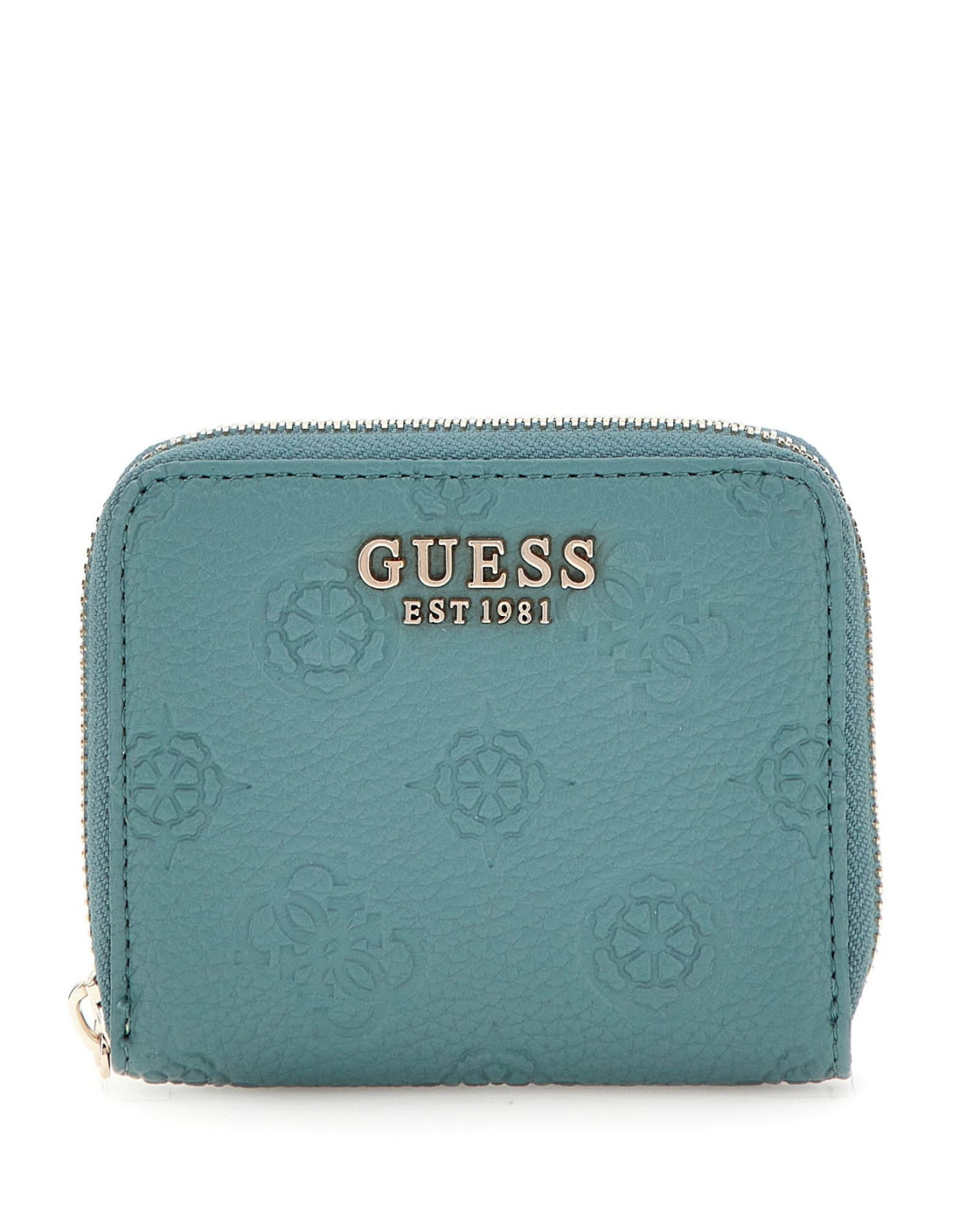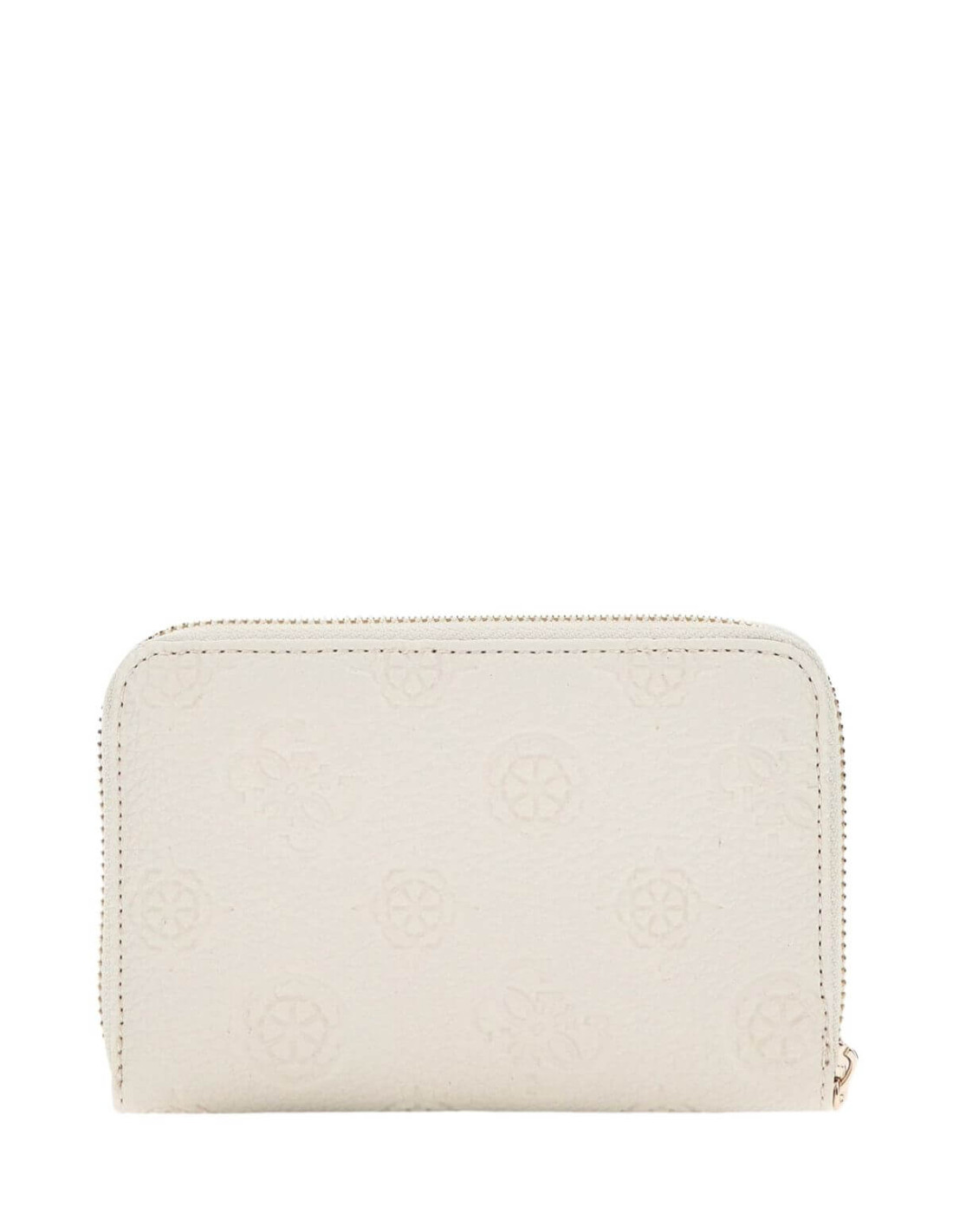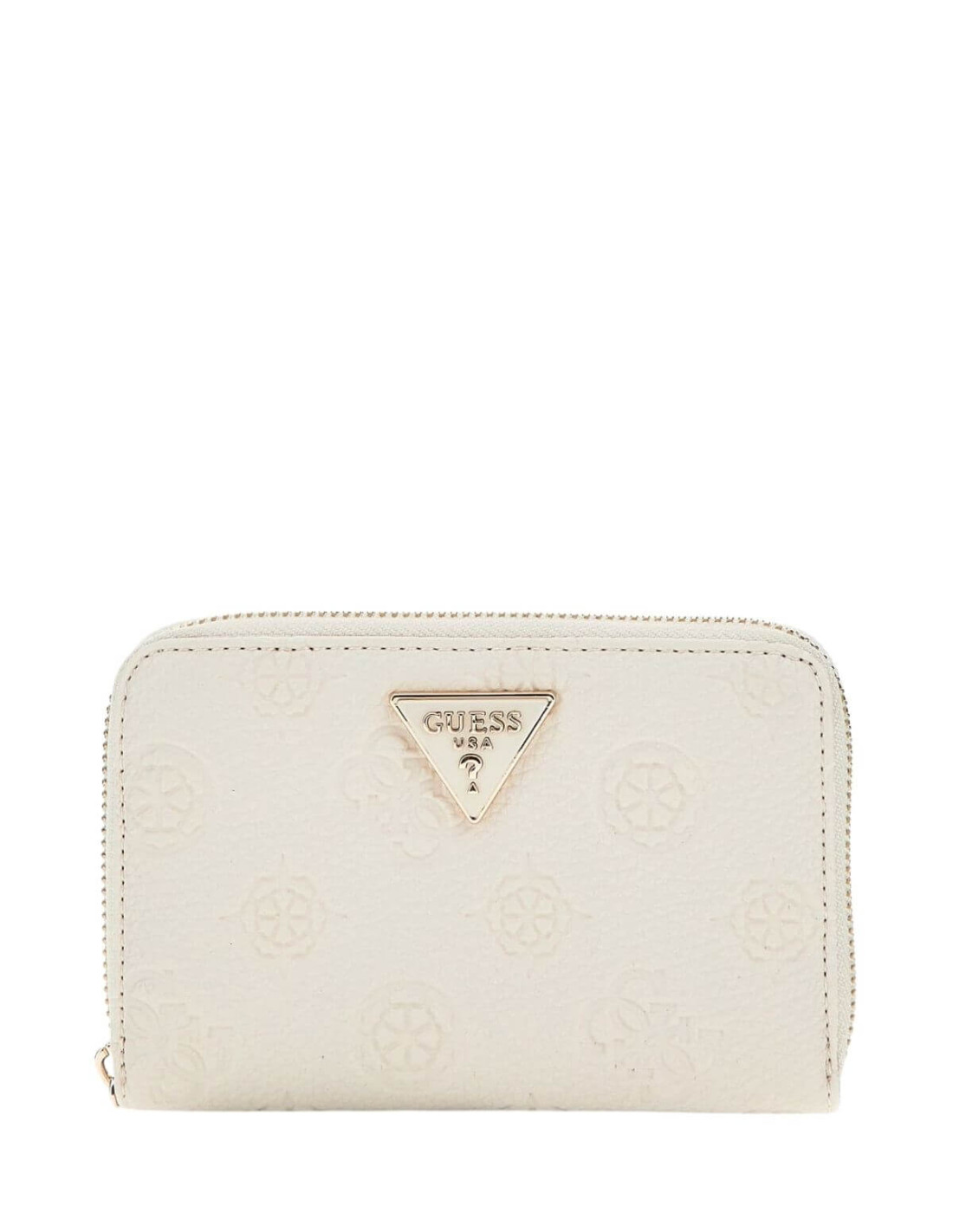 Portafoglio in similpelle con chiusura a cerniera lampo, metallica colore oro pallido.