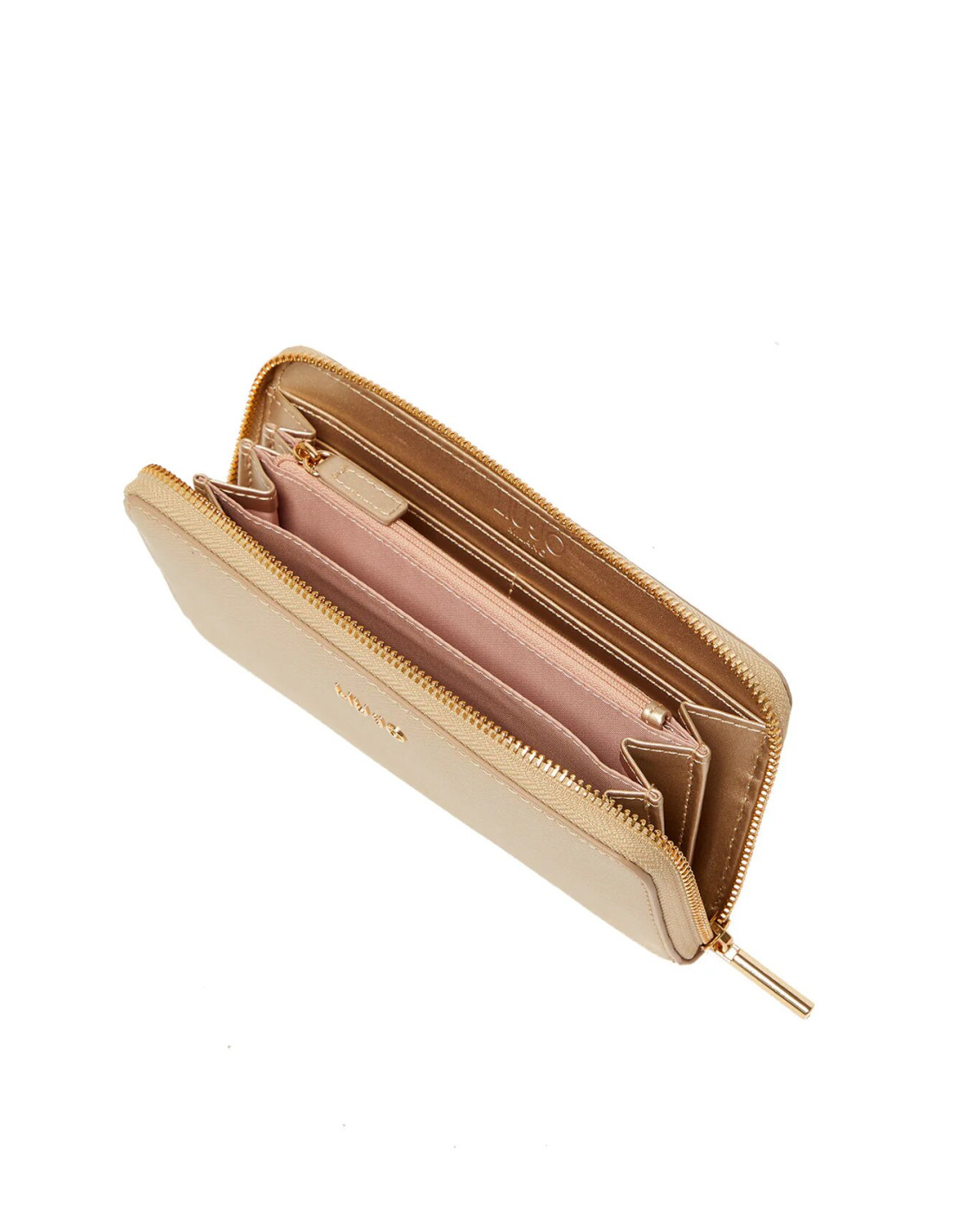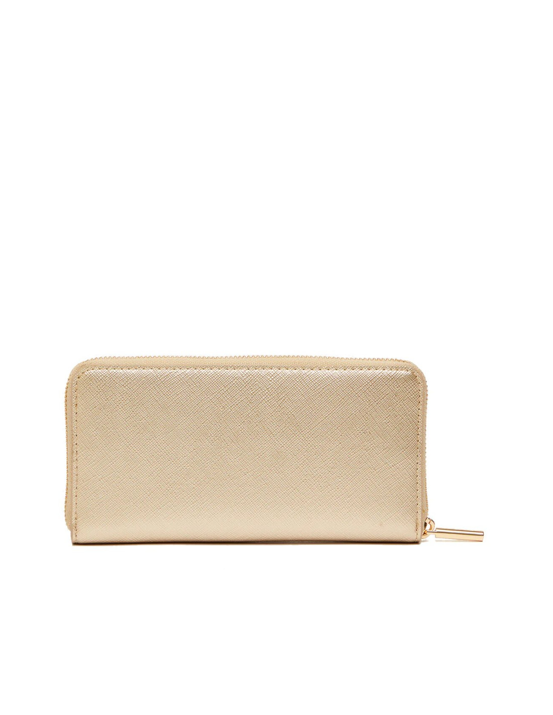 Portafoglio in similpelle con chiusura a cerniera lampo, metallica colore oro.