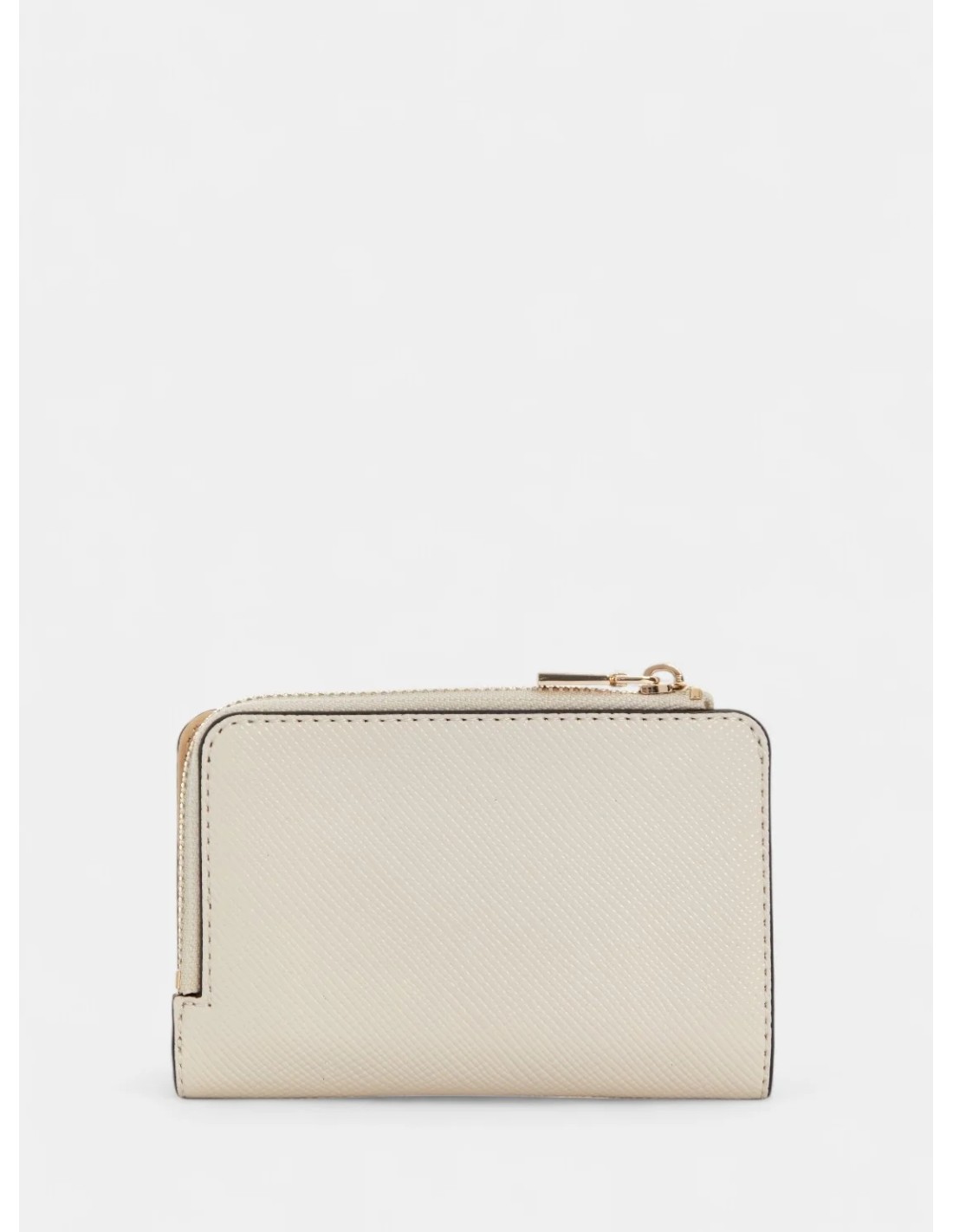 Portamonete con zip, slots per carte di credito e scomparto per banconote.