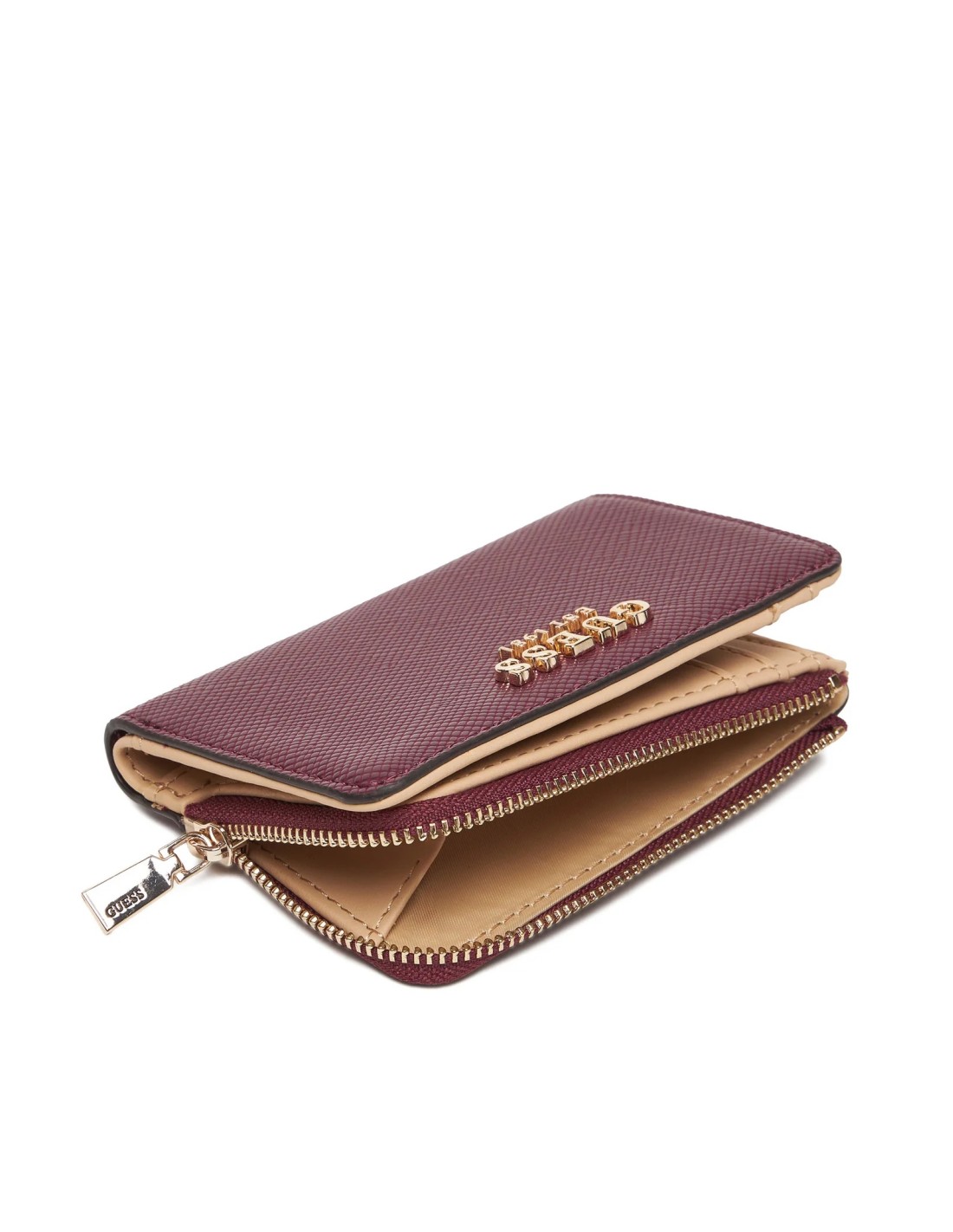 Portamonete con zip, slots per carte di credito e scomparto per banconote.