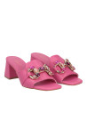 Sottopiede e tomaia in vera pelle con dettaglia in strass di varie sfumature di fuxia.