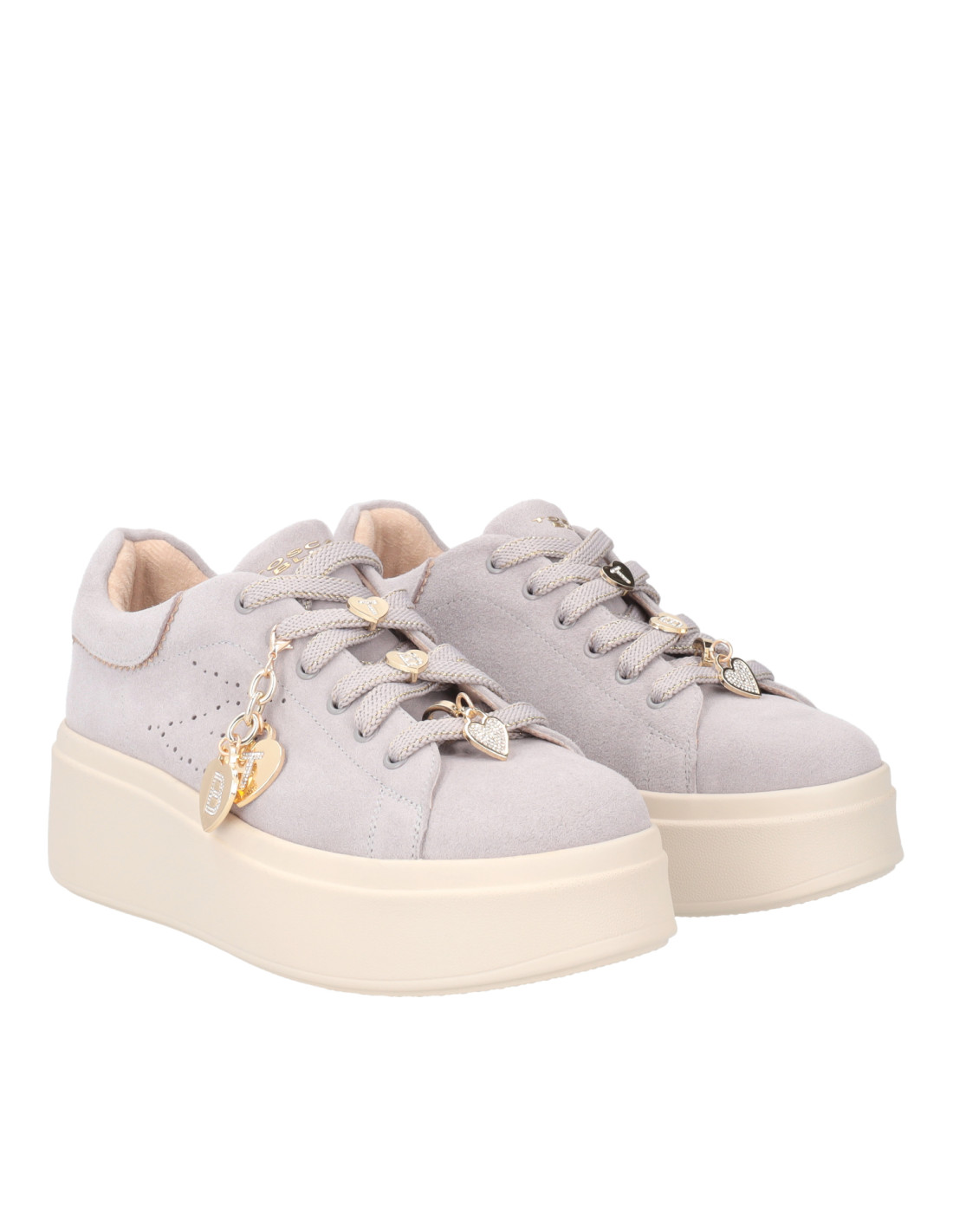 Arricchita da dettagli sui lacci a forma di cuore in colore oro removibili, comodissime grazie alla suola alta e con platform e la morbidissima imbottitura.