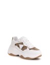 Sneakers in similpelle, chiusura con lacci, dettagli in oro.