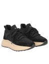 Sneakers in pelle scamosciata e tessuto lavorato a maglia, chiusura con lacci in corda, colletto elasticizzato.