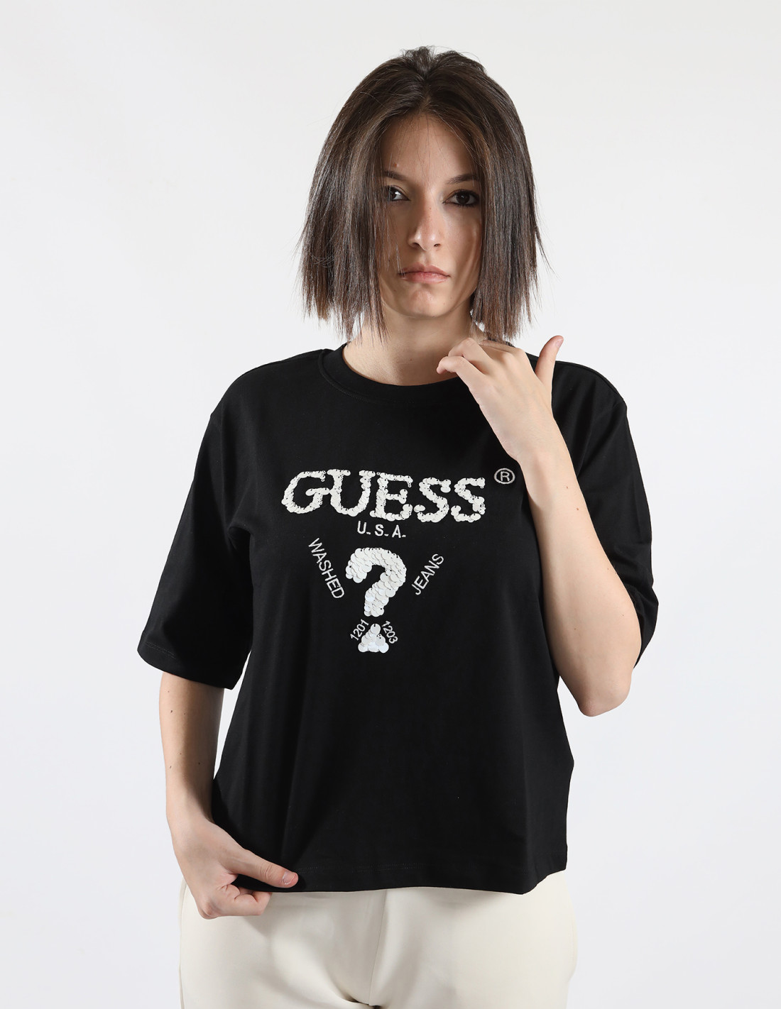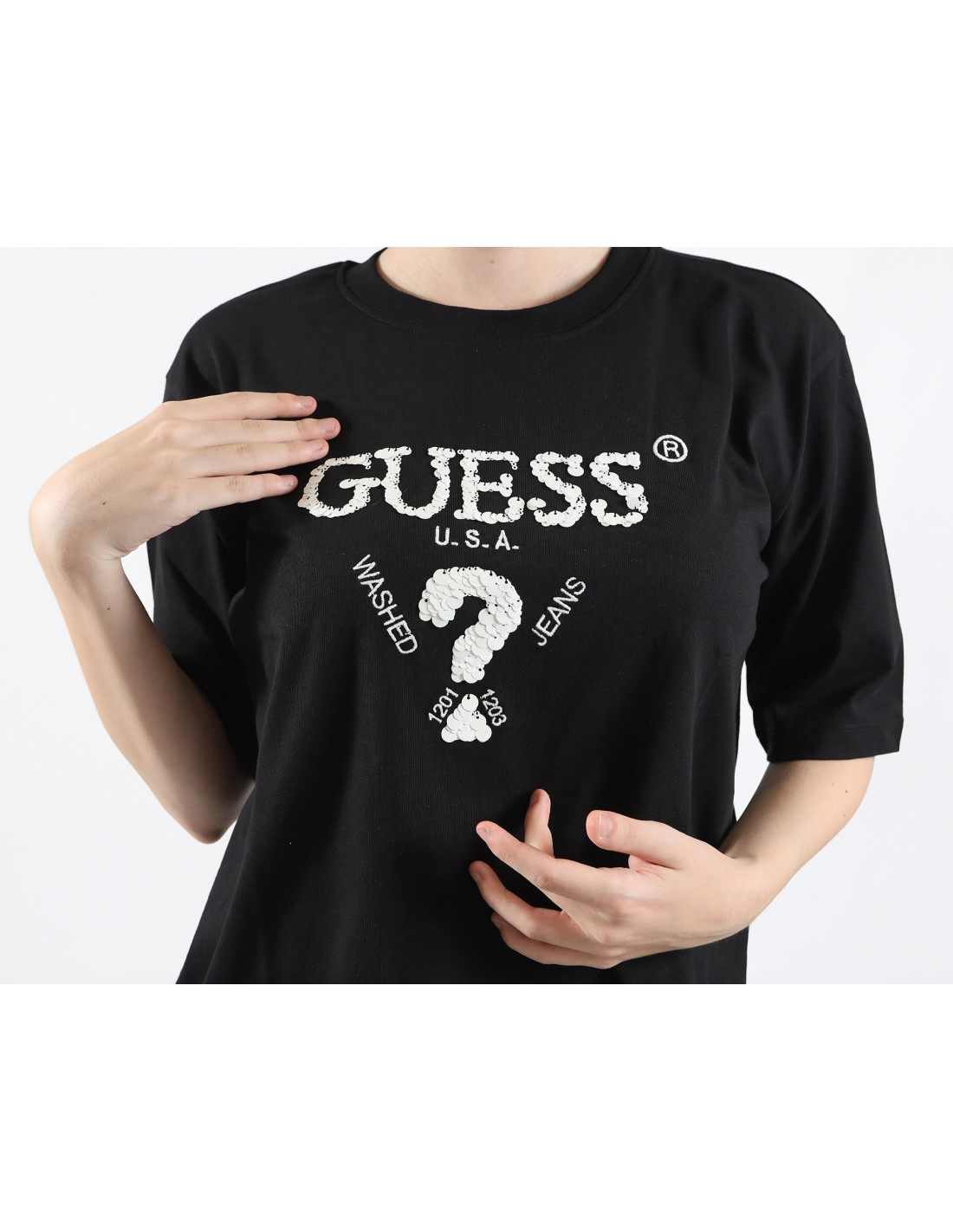 T-shirt logo frontale con paillettes Guess V4YI06I3Z14