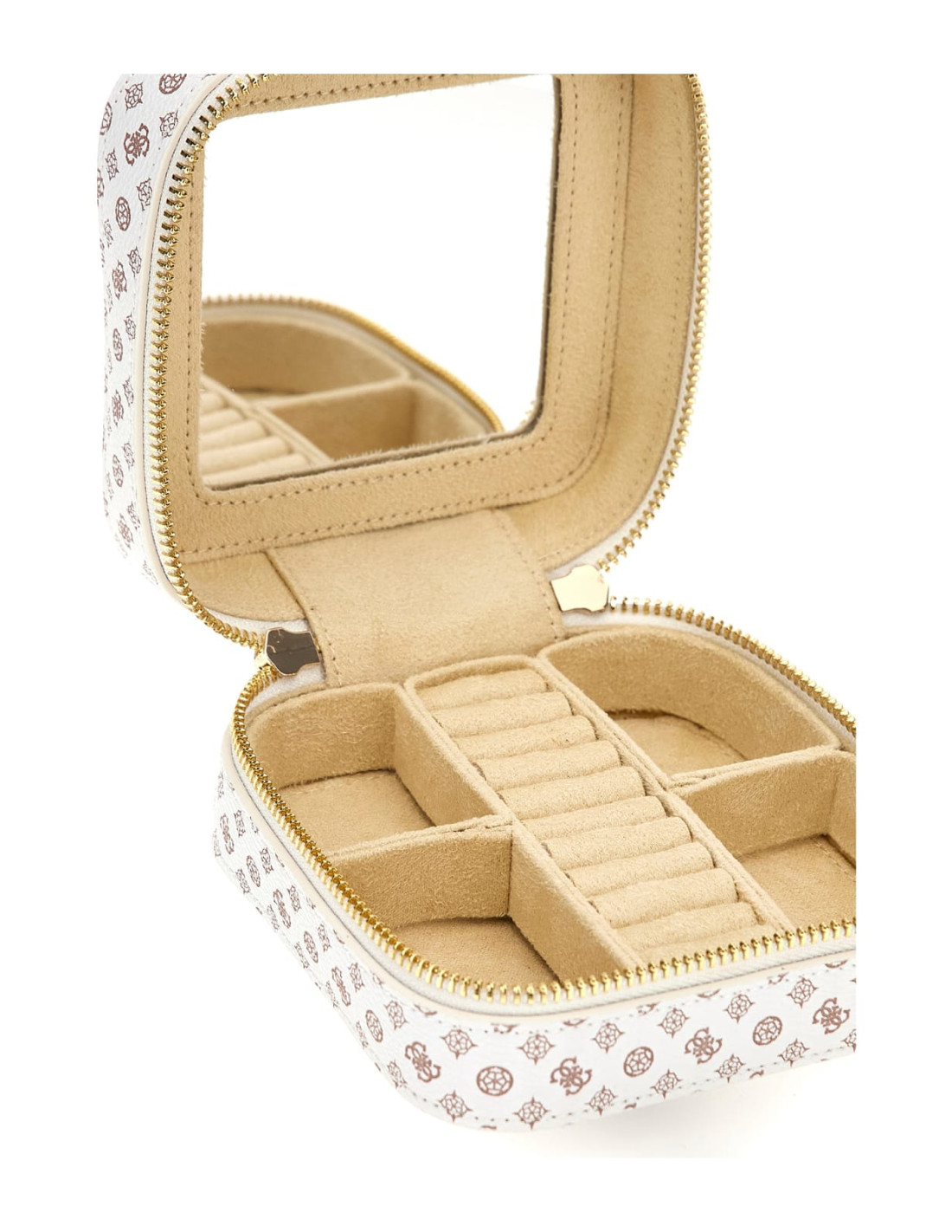 Scomparto interno con specchietto, 4 scomparti per gioielli e 10 tasche per anelli.