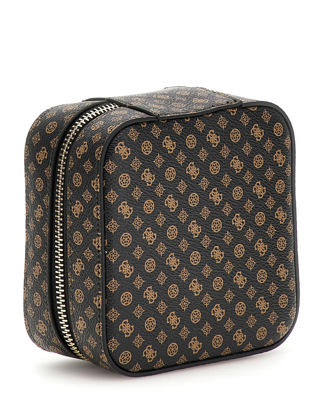 Portagioie multi-logo Guess, con metallica dorata e lettering frontale.