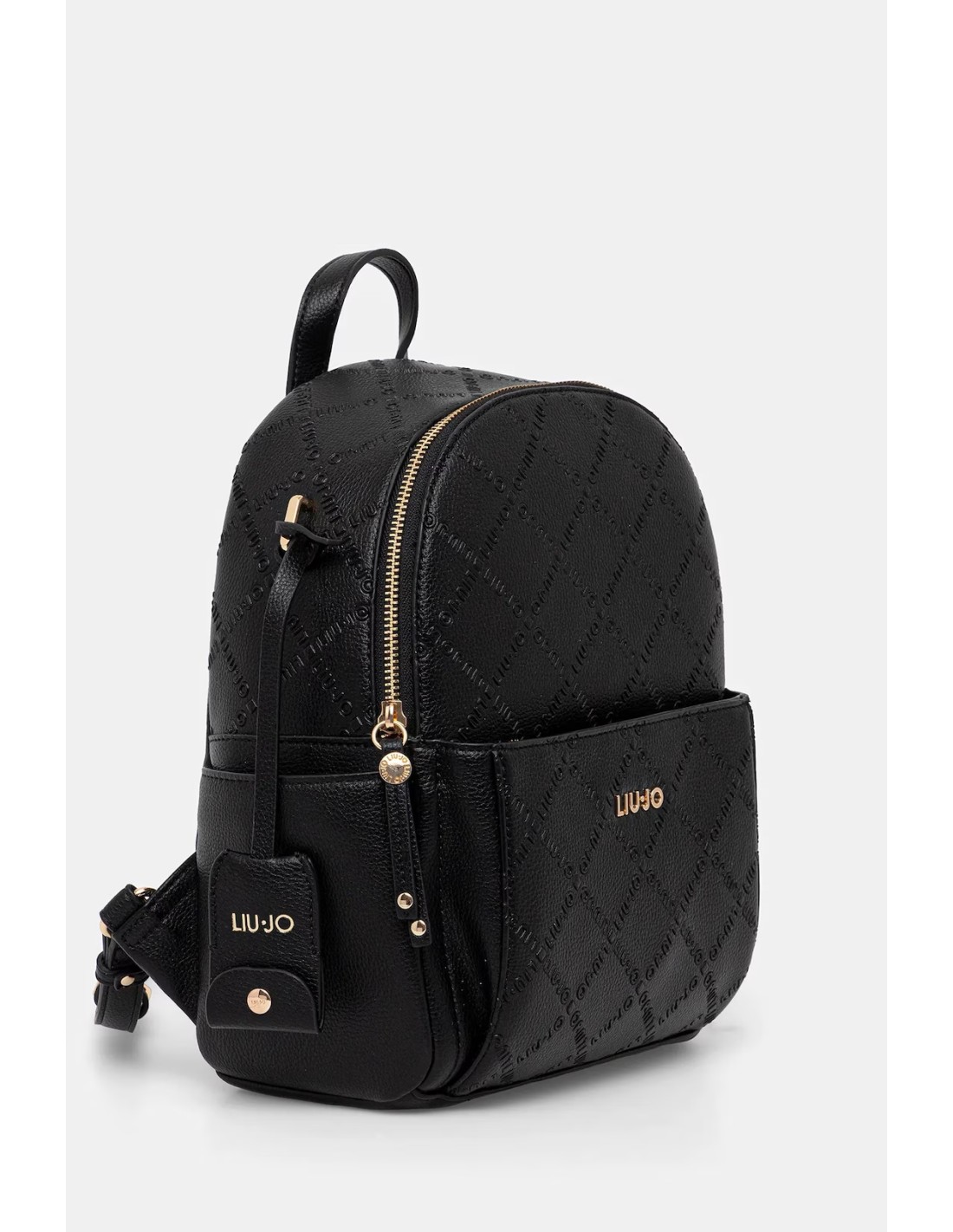 Spallacci regolabili, tasca frontale con zip, charm removibile con logo.