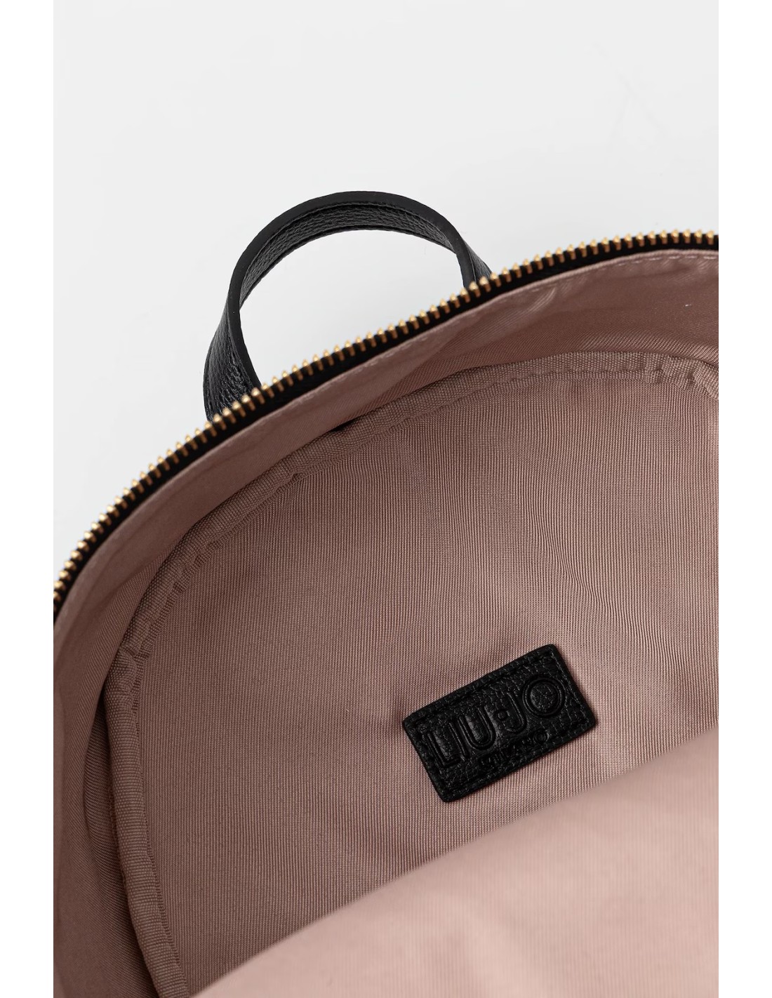 Zaino in similpelle, chiusura con cerniera lampo, metallica in oro.
